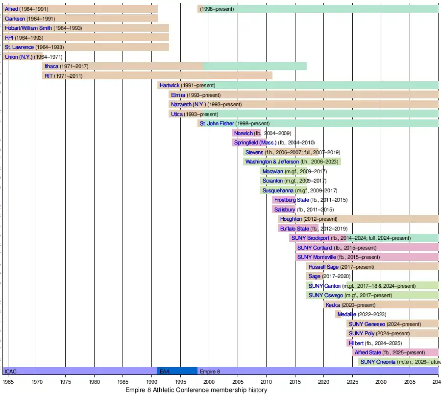 - ^ "SUNY Brockport and SUNY Geneseo to Join Empire 8; 2024-25 Start Date Anticipated". Empire 8. 2022-02-14. Retrieved 2023-08-23.