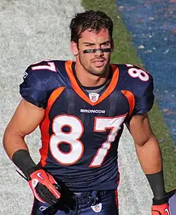 Decker was selected by the Denver Broncos in the third round with the 87th overall pick in the 2010 NFL draft.[36] He signed a four-year contract through 2013 worth $2,522,000.[37] Due to foot surgery, Decker sat out during Broncos rookie mini-camp and OTA's.[38] Broncos head coach Josh McDaniels said he hoped he'd be ready by the season's opener, "At this point we're going to err on the side of being real careful and not put them in a situation where (it's) the last day of minicamp on June 13th and all of a sudden we have a foot injury,"[39] said McDaniels. "Hopefully, everybody will be ready by August."