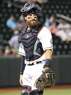 After starting the 2014 season with Lake County, Haase received a midseason call-up to the Double-A Carolina Mudcats, with whom he hit .185 with four runs, one home run, and six RBIs in 16 games. Haase remained in the Carolina League the following year, as Cleveland changed its Double-A affiliate from the Mudcats to the Lynchburg Hillcats.[11] He started the 2015 season there in a slump before hitting a walk-off home run in the 10th inning of a game against the Wilmington Blue Rocks on June 11.[12] In 90 games with Lynchburg in 2015, Haase batted .247 with nine home runs and 55 RBIs. Defensively, he started 87 games at catcher and threw out 31 percent of attempted base stealers.[13]