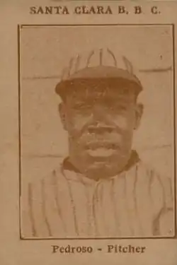 Eustaquio "Bombín" Pedroso (September 20, 1886 - death date unknown) was a Cuban professional baseball pitcher, first baseman and corner outfielder in the Cuban League and the Negro leagues. He played from 1907 to 1927 with several ballclubs, including Club Fé, Almendares and the All Cubans in the Cuban League and the Cuban Stars (West) and Cuban Stars (East) in the Negro leagues. In the 1909 Cuban-American Major League Clubs Series, Pedroso pitched a no-hitter against the Detroit Tigers.[1]