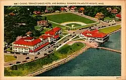 During this era, attempts were made periodically to formalize league play among Cape Cod ballclubs. One such foray came in 1913 when Cottage Club manager H. Newton Marshall led the formation of a "Cape Cod Base Ball League". The league comprised six teams: Osterville, Pocasset, Orleans, Sandwich, South Yarmouth, and the Falmouth Heights Cottage Club, with each team playing each other team twice for a ten-game schedule. In what appears to have been the league's lone season, the Cottage Club claimed the pennant with a 9–1 record. Marshall was credited with "[turning] a rough field into one of the finest diamonds used for amateur base ball in this part of the country; ...equal in every respect to many of the major league diamonds," and with "[arousing] enthusiasm in base ball in Falmouth to such a pitch that people come from quite a distance to swell the crowds at the games."[3][4][5] The team's popularity was such that Marshall, team captain Ralph Mendall, and the other Cottage Club players were celebrated in song at local theatrical performances.[6][7]