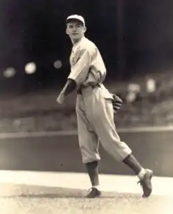 CCBL Hall of Famer Danny "Deacon" MacFayden, a Cape Cod native from Truro, played for Falmouth in 1925. The season was highlighted by MacFayden's one-hitter against Hyannis.[44] By 1926, he was playing for the hometown Boston Red Sox and went on to pitch for 17 years in the major leagues, winning a World Series title with the New York Yankees in 1932. Haskell "Josh" Billings played for Falmouth from 1925 to 1927, was team MVP in 1925, and finished the 1927 season playing for the Detroit Tigers.[45][46][34] National Football League running back Curly Oden spent his off-season as Falmouth's player-manager in 1927 and 1928. Oden was known as "the king of the base stealers in the league," having "thrilled the crowds on several occasions by stealing home."[47][48][49] CCBL all-league catcher Gene Connell played for Falmouth from 1927 to 1929, and went on to play for the Philadelphia Phillies.[50][51][52] Future major league umpire Bill Stewart pitched for Falmouth in 1929.[53][54] Prior to joining Falmouth in 1929, shortstop Waddy MacPhee had played briefly for the New York Giants.[55][56][57]