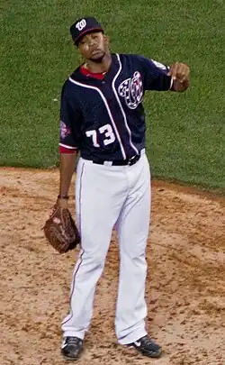 Felipe Javier Vázquez (born Felipe Javier Rivero Blanco[1] on July 5, 1991) is a Venezuelan professional baseball pitcher for Marineros de Carabobo of the Venezuelan Major League. He played in Major League Baseball (MLB) from 2015 to 2019 for the Washington Nationals and the Pittsburgh Pirates. He was an All-Star in 2018 and 2019 before his arrest on sexual assault charges led to his being placed on the restricted list by both the Pirates and Major League Baseball.