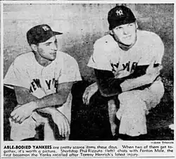 ![]() Mole with Phil Rizzuto in the dugout, 1949 | |