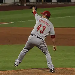 Rodriguez was selected by the Los Angeles Angels in the 11th round of the 2003 Major League Baseball draft, and signed with the club on June 25, 2003. He played in the Angels' farm system from 2003 through 2010. He made his major league debut against the New York Yankees on May 2, 2009, at Yankee Stadium, pitching 2⁄3 of an inning in relief, giving up three runs (two earned) on a hit and two walks;[1] it was his only MLB appearance with the Angels. Rodriguez became a free agent on November 6, 2010.