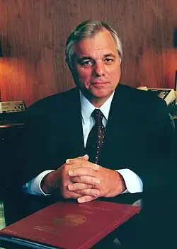 Defense witnesses included Kuhn, Feeney, Pro Football Commissioner Pete Rozelle, and several MLB executives.[153] One day of the trial consisted entirely of the testimony of Robert R. Nathan, an economic consultant who said that the reserve system did stifle competition, but that the alternative would lead to smaller-market teams like the Milwaukee Braves being choked out by teams in large markets like Philadelphia and New York.[154] This sentiment was later echoed by team owners including Bob Reynolds of the Los Angeles Angels, Frank Dale of the Cincinnati Reds, John McHale of the Montreal Expos, and Ewing Kauffman of the Kansas City Royals, all of whom insisted that the reserve system was necessary to preserve the "economic health" of their respective franchises.[155] On the sixth day of the trial, Kuhn argued in favor of the historical precedents set by the reserve clause and Supreme Court.[156] He was careful not to criticize Flood personally, instead attacking the MLBPA as acting in bad faith and not committing to "realistic negotiations" with the owners.[157]