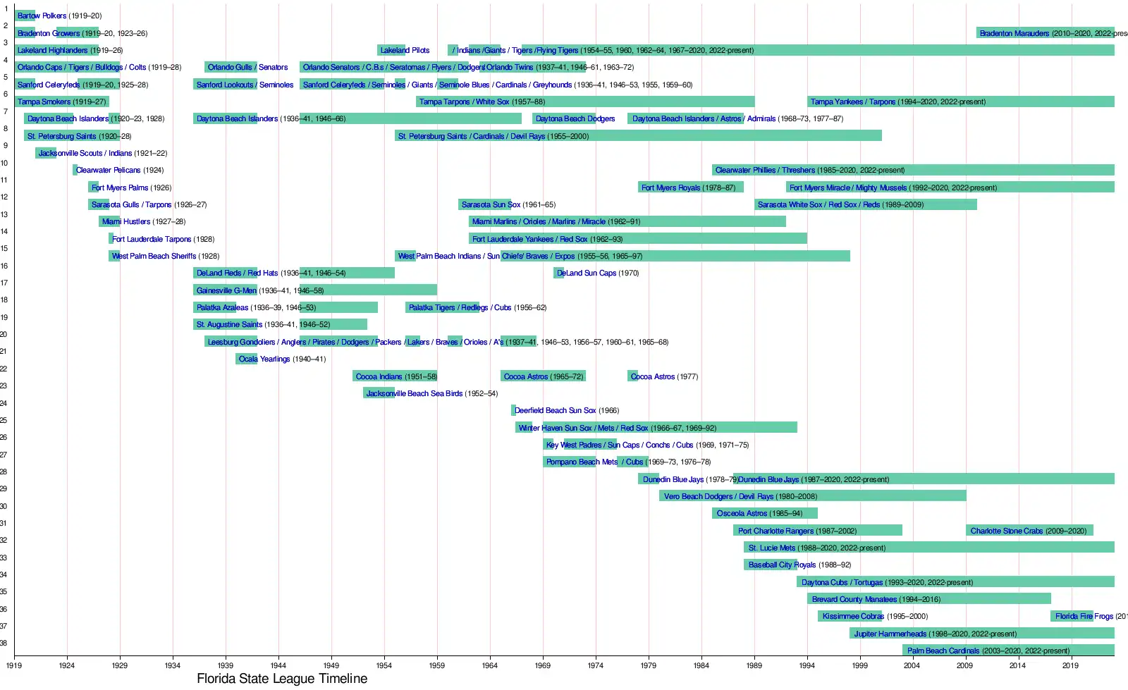 - ^ "Florida State League (Adv A) Encyclopedia and History". Baseball-Reference. Sports Reference. Retrieved November 11, 2020.