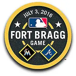The Fort Bragg Game was a Major League Baseball (MLB) specialty game played on July 3, 2016 between the Miami Marlins and Atlanta Braves of the National League. It was held at Fort Bragg, North Carolina, United States, becoming the first regular season professional sports event ever held on an active U.S. military base, and the first MLB game played in the state. The game was broadcast on Sunday Night Baseball on ESPN. The Marlins defeated the Braves, 5–2. After the game, the grandstands were removed, and the field became a multi-use sporting ground.
