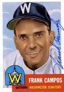 Born in Havana, Campos played in organized baseball for nine seasons (1944–1945; 1948–1954). He made his debut with Washington after winning the 1951 batting championship of the Class B Tri-State League, batting .368 with 177 hits.[1] In his debut game for the Senators on September 11, 1951, Campos doubled in his first MLB at bat off Howie Judson of the Chicago White Sox.[2] He continued his hot streak by racking up four multi-hit games in his next seven Major League appearances, and batted .423 with 11 hits in 26 at bats during his September trial.[3]