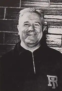 Keaney was a native of Boston, Massachusetts, and attended Cambridge Latin School, graduating in 1906. He graduated from Bates College, where he played several sports, in 1911.[2] He was the head football coach at Everett High School in Massachusetts from 1917 to 1919. He coached at Rhode Island State College (now the University of Rhode Island) from 1920 to 1948 and taught a style of basketball using a fast-breaking offense and a full-court defense. In his 28 years at Rhode Island, Keaney's basketball Rams won eight conference championships and had only one losing season.[3] In 1939, Keaney's Rams became the first college team to score more than 50 points per game, and in 1943 the team had an average of more than two points per minute (80.7 points per game), which led to the Rams being dubbed "The Firehouse Gang". During his tenure the URI team had four National Invitation Tournament appearances. Keaney's career record with the men's basketball team was 401–124 (.764).[3]