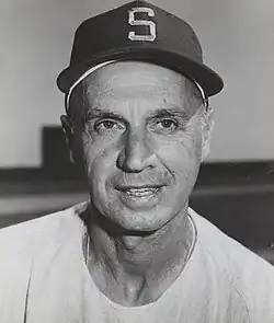 Crosetti became third base coach with the Yankees in 1947 and was part of an additional nine World Series championships as a coach with the franchise after he retired as a player following the 1948 season. He was said to be the "perfect coach", because he had no ambition whatsoever to manage, turning down numerous offers over the years to do so.[9] After 37 years, longing to be closer to his family in Northern California,[10] he left the franchise to join the expansion Seattle Pilots in 1969.[11] He moved to the Minnesota Twins from 1970 to 1971, after the Pilots (who became the Milwaukee Brewers) didn't renew his contract.[12]
