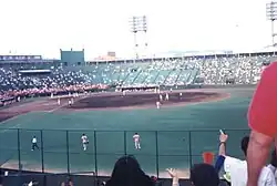 Fujiidera Stadium (近鉄藤井寺球場) was a multi-use stadium in Fujiidera, Osaka, Japan. It was used mostly for baseball and was the home of the Kintetsu Buffaloes prior to the Osaka Dome opening in 1997. The stadium had a capacity of 32,000 people. The stadium was built in 1928, and closed in 2005. The site has since been redeveloped, and is now the home of the elementary school branch of Shitennoji International Buddhist University.