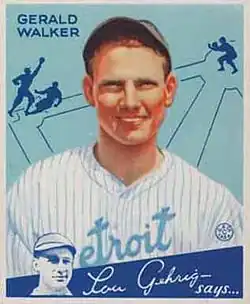 Gerald Holmes "Gee" Walker (March 19, 1908 – March 20, 1981) was an American professional baseball outfielder who played in Major League Baseball. During his fifteen-year career he played with the Detroit Tigers, Chicago White Sox, Washington Senators, Cleveland Indians and Cincinnati Reds.