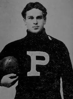 Brooke played seven years of college football at Swarthmore College and then at the University of Pennsylvania. He was selected as an All-American in 1894 and 1895 while playing for the University of Pennsylvania. Penn was undefeated and won the national championship of football in the two seasons that Brooke was named an All-American. All-American selector, Caspar Whitney called Brooke a "very hard man to stop. He strikes the line with almost irresistible force." He was regarded as a ferocious fullback and a top notch punter. He is credited with coining the phrase "coffin corner" when describing his long punts deep into the opposing end of the field.[1] Brooke was barred from playing for Pennsylvania after the 1895 season because of an agreement between Harvard and the University of Pennsylvania that limited players to four seasons.[3] After finishing a bachelor's degree from Pennsylvania, Brooke was the subject of an allegation of being an ineligible player in an October 24, 1896, game in New Orleans, LA. In the game, Brooke played only one down for Tulane University before LSU protested to the game's referee. Tulane claimed that Brooke planned on enrolling there as a graduate student. During the debate between team captains, Brooke refused to sign an affidavit stating his intention to enroll at Tulane, as he was already enrolled in law school at the University of Pennsylvania. The referee ruled him ineligible to play. The Tulane football team refused to continue playing the game without Brooke, so the referee ruled the game to be a forfeit in favor of LSU.[4][5]