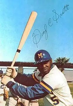 After his Major League career, Scott became a player-manager in the Mexican League and went on to become full-time manager in the Independent baseball league from the 1980s until 2002.[2] He was inducted into the Boston Red Sox Hall of Fame in 2006 and the Mississippi Sports Hall of Fame the following year.[2][3] In 2014, he was inducted into the Milwaukee Brewers Wall of Honor.[4]