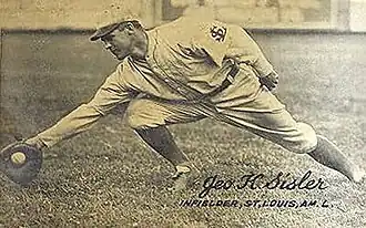 George Harold Sisler (March 24, 1893 – March 26, 1973), nicknamed "Gorgeous George", was an American professional baseball first baseman and player-manager. From 1915 through 1930, he played in Major League Baseball (MLB) for the St. Louis Browns, Washington Senators, and Boston Braves. He managed the Browns from 1924 through 1926.