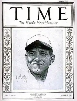 George Harold Sisler was born on March 24, 1893, in the unincorporated hamlet of Manchester (now part of the city of New Franklin, a suburb of Akron), Ohio.[1][2] His parents, Cassius Clay and Mary (née Whipple) Sisler, had been married after meeting at Hiram College, which they both graduated from. Both worked as schoolteachers at one point, though by the time George was born, Cassius was supervising a nearby coal mine.[3] Manchester did not have a high school; thus, when George turned 14, he moved to Akron to live with his older brother Efbert so that he could attend school there.[4] Sisler played baseball, basketball, and football in high school, but baseball was his main focus.[5] Because of his good looks, the local newspapers began referring to him as "Gorgeous George".[6] During George's senior year, Efbert died of tuberculosis, but George was able to move in with a local family and finish school.[7][8]