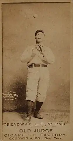 George B. Treadway (November 11, 1866 – November 5, 1928) was an American baseball player in the National League from 1893 to 1896. He played for the Baltimore Orioles for one season, the Brooklyn Grooms for two seasons, and finished off his career with two games for the Louisville Colonels. He was a lifetime .285 hitter, with 13 home runs and 227 runs batted in. He did have a solid year in 1894 with Brooklyn, batting .330, hitting 26 triples, and driving in 102 runs.