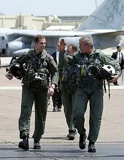 In May 1968, Bush joined the United States Air Force and was commissioned into the Texas Air National Guard.[31] After two years of training in active-duty service,[32] he was assigned to Houston, flying Convair F-102s with the 147th Reconnaissance Wing out of Ellington Field Joint Reserve Base.[31][33] Critics, including former Democratic National Committee Chairman Terry McAuliffe, have alleged that Bush was favorably treated due to his father's political standing as a member of the House of Representatives, citing his selection as a pilot despite his low pilot aptitude test scores and his irregular attendance.[31] In June 2005, the Department of Defense released all the records of Bush's Texas Air National Guard service, which remain in its official archives.[34]