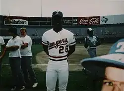 In 1983, Wright had a career year with a surprising Texas Rangers club that was in first place at the all-star break. For the season he played in all 162 games and hit .287 with 18 home runs, 80 rbi, and a .745 OPS. The next several seasons he was often injured and failed to live up to his 1983 performance. In his last game with the Rangers he committed a costly three-base error in the bottom of the 9th inning of a game in which Charlie Hough would later lose a no-hitter and the game.[1]