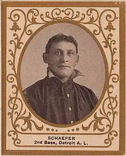 Born William Herman Schaefer in the South Side of Chicago, to German immigrant parents, he played in two World Series with the Tigers.[1] During the 1909 season, Schaefer and Red Killefer were traded by the Tigers to the Senators for Jim Delahanty. In 1,150 career games, Schaefer batted .257 with 9 home runs and 201 stolen bases.