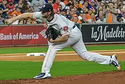 Cole is a power pitcher who features a four-seam and two-seam fastball that he regularly throws around 97 mph,[96] but have been clocked as high as 102 miles per hour (164 km/h) in college.[97] He also throws a slider, knuckle curve, changeup, and as of 2022, has reintroduced his cutter which is a pitch he has not thrown since college.[98] Between 2017 and 2018, due to his increased spin rate and a more complete arm deceleration and follow-through, his fastball got a lower WHIP, and used his sinker less often, no longer "pitching to contact".[99] He throws from a low three-quarters position.[100] In the first round of 2019 ALDS, his strikeout pitches were high fastballs, sliders and knuckle curveballs which curve down and away from right-handed batters.[101]