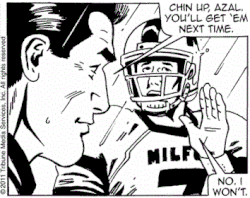 Gil Thorp is a sports-oriented comic strip which has been published since September 8, 1958. The main character, Gil Thorp, is the athletic director of Milford High School and coaches the football, basketball, and baseball teams. In addition to the sports storylines, the strip also deals with issues facing teenagers such as teen pregnancy, steroids, and drug abuse.