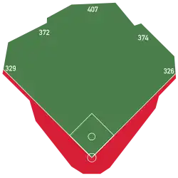 | Field size | Baseball:[9] Left field: 329 ft (100 m) Left center: 372 ft (113 m) Center field: 407 ft (124 m) Right center: 374 ft (114 m) Right field: 326 ft (99 m) Backstop: 42 ft (13 m) ![]() |
