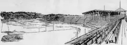 Prior to the Federal League's arrival, the most important event held at the stadium was probably the November 24, 1910, Kansas vs. Missouri annual rivalry college football game. The game ended in a 5-5 tie, each team scoring a touchdown (worth 5 points at the time) and missing the subsequent extra point attempts. The Kansas players in particular were not happy with the field conditions, saying the surface was too hard and could cause injuries.[Leavenworth Weekly Times, November 24, 1910, p.1] The change in venue gave the annual event a boost, with the highest gate receipts recorded to that point in the series ($34,000).[Atchison Daily Globe, November 25, p.7] This entry in the rivalry series was the last one to be played in Kansas City until 1944.