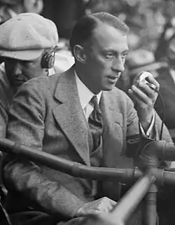 In 1927 he broadcast the Long Count Fight between Gene Tunney and Jack Dempsey with Phillips Carlin to more than 60 NBC radio stations.[5] When a colleague asked him, shortly before his passing, what his favorite piece of commentary was, McNamee mentioned Babe Ruth's called shot in the 1932 World Series.[6]