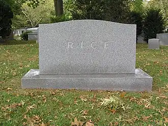 Rice died at the age 73 on July 13, 1954, following a stroke.[2] He is interred at Woodlawn Cemetery in the Bronx, New York City.
