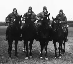 Outlined against a blue-gray October sky the Four Horsemen rode again. In dramatic lore they are known as famine, pestilence, destruction and death. These are only aliases. Their real names are: Stuhldreher, Miller, Crowley and Layden. They formed the crest of the South Bend cyclone before which another fighting Army team was swept over the precipice at the Polo Grounds this afternoon as 55,000 spectators peered down upon the bewildering panorama spread out upon the green plain below.[12]