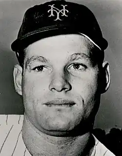 Following his graduation, the Los Angeles Dodgers signed Goossen for a six-figure bonus. He spent 1964 in the minor leagues playing first base with the Dodgers rookie-level Pioneer League team, the Pocatello Chiefs and then their single-A Florida State League team, the St. Petersburg Saints. After accepting an invitation to spring training from the Dodgers, he spent the pre-season sharing a locker with future Hall of Famers Sandy Koufax and Don Drysdale who were on their way to winning the 1965 World Series. On April 9, the woeful New York Mets selected the 19-year-old Goossen through the first-year waiver process. Mets manager Casey Stengel, evidently less than impressed with his new player, infamously quoted "This is Greg Goossen. He's 19 years old, and in 10 years . . . he's got a chance to be 29."[3] Needing players, the Mets promoted the former bonus baby directly to the majors. Goossen batted .290 in 11 games as part of a catching group that included Chris Cannizzaro, Jesse Gonder, John Stephenson and Yogi Berra before being assigned for the rest of the season to single-A Auburn in the New York–Penn League.[4]