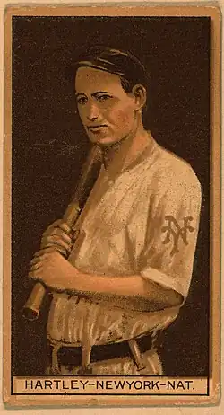 Hartley was a catcher with good defensive skills as he took responsibility for getting the most out of his pitchers, and worked hard at ensuring their success. He debuted with the New York Giants in 1911, appearing in part of three seasons. In 1914 he jumped to the outlaw Federal League, becoming a regular with the St. Louis Terriers for the next two years, and later shared catching tenures for the St. Louis Browns, Boston Red Sox, Cleveland Indians, and new stints with the Giants and Browns, retiring at the end of the 1934 season. Between his stints with the Browns and Giants, he spent seven years in the minor leagues with the Columbus Senators.