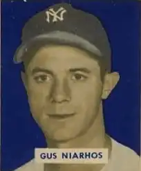 Constantine Gregory "Gus" Niarhos (December 6, 1920 – December 29, 2004) was an American professional baseball player. He played in Major League Baseball as a catcher for the New York Yankees (1946, 1948–50), Chicago White Sox (1950–51), Boston Red Sox (1952–53) and Philadelphia Phillies (1954–55).[1] Niarhos batted and threw right-handed, stood 6 feet (1.8 m) tall and weighed 160 pounds (73 kg).[1][2]