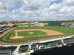 As the spring training home of the Minnesota Twins, it saw its seating capacity increased from 7,500 to 9,300 in the spring of 2015.[4] Class A Advanced affiliate, the Fort Myers Mighty Mussels (then the Fort Myers Miracle), of the Florida State League finished out their 2014 season and FSL championship at JetBlue Park (Spring home of the Boston Red Sox, also in Fort Myers) in order to get the renovations done in time for catchers & pitchers to report in 2015. The renovations will also increase the amount of walkable area, provide more shaded areas for sunny games[5] and an expanded gift shop, among other amenities for fans and players.[6]