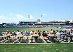 Seating includes 9,000 lower deck seats, 2,800 upper deck seats and a 300-person capacity picnic area. The stadium also features 24 luxury skyboxes with seating for 400, and a 225-seat full-service restaurant with a panoramic view of the field from the first base side. A record crowd of 14,263 was reached August 31, 1996.[8]