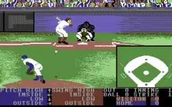 Play is controlled with a joystick or arrow keys and an action button. One of the four cardinal directions is used to choose the pitch, and again to aim it towards low, high, inside (towards batter), or outside (away from batter). The same directions are used to aim the swing when batting. When fielding after a hit, the defensive player closest to the ball will flash to show it is the one currently under control. The four directions are then used to throw to one of the four bases.