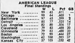 - ^ Hensler, Paul (2012). The American League in Transition, 1965-1975: How Competition Thrived When the Yankees Didn't. McFarland. p. 5. ISBN 9780786446261. Retrieved August 6, 2015.