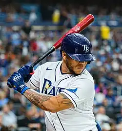 Ramírez was traded to the Chicago Cubs on November 22, 2021, in exchange for cash considerations.[21][22] On March 25, 2022, Ramírez was traded to the Tampa Bay Rays in exchange for Esteban Quiroz.[23][24] For much of the 2022 season, he was a contender for the batting title in the American League. Ramírez was hitting .329 through July 17, when a pitch from the Baltimore Orioles’ Jordan Lyles fractured his right thumb and caused him to miss four weeks.[25] He ended the season with a slash line of .300/.343/.404, leading the team in batting average, and his 58 RBI for the Rays were second only to Randy Arozarena.