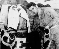After being discharged as a captain in 1946,[16][33] he was named athletic director,[34] baseball coach,[34] basketball coach,[35] and football coach at Erskine College, which was resuming its athletic program after having dropped it at the start of the war.[24] The team had also thrown out almost all football equipment when it dropped the program, leaving only one jersey, a few shoulder pads, and several balls for Bolick when he assumed the job, meaning he had to get all the equipment and recruit all the players for his team.[16][36] As a result, the football team compiled a disastrous 0–9 record,[37] after which Bolick resigned, although he finished coaching the remaining sports for the 1946–47 season.[38]