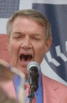On May 15, 2009, during a series in Washington, the Phillies visited the White House and were congratulated by President Barack Obama for their 2008 World Series championship. The visit had been postponed from April 14, due to Kalas's death the preceding day. The President mentioned Kalas, his voice, his love for the Phillies, and his legacy.[8] This was the second of two tributes to Kalas in Washington. On April 21, eight days after Kalas's death, then–U.S. Congressman Joe Sestak paid tribute to Kalas in the House of Representatives. At the time, Sestak represented Pennsylvania's 7th congressional district, where Kalas resided.[9][10]