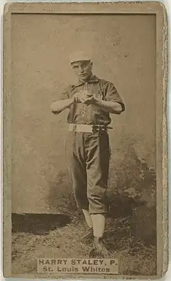 Henry Eli Staley (November 3, 1866 – January 12, 1910) was an American professional baseball player who pitched in the major leagues from 1888 to 1895. He played for the Boston Beaneaters, Pittsburgh Alleghenys/Pirates, Pittsburgh Burghers, and St. Louis Browns. On June 1, 1893, in a game against the Louisville Colonels, Staley had nine runs batted in, a record for most RBIs in a game by a pitcher. The record stood for over 70 years until equaled by Atlanta Braves pitcher Tony Cloninger in 1966.[1]