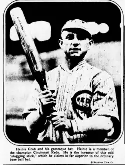 Henry Knight "Heinie" Groh (September 18, 1889 – August 22, 1968) was an American professional baseball player and manager. He played in Major League Baseball as a third baseman from 1912 to 1927, spending nearly his entire career with the Cincinnati Reds and New York Giants before playing his final season for the Pittsburgh Pirates. He excelled as a fielder, becoming the National League's top third baseman in the late 1910s and early 1920s, and captained championship teams with the 1919 Reds and 1922 Giants. Renowned for his "bottle bat", he was an effective leadoff hitter, batting .300 four times and leading the league in doubles twice and in hits, runs and walks once each.