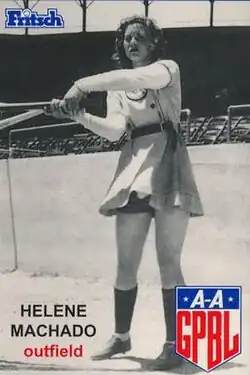 Helene Machado [Van Sant] (April 17, 1926 – February 13, 2019) was an outfielder who played from 1946 to 1947 in the All-American Girls Professional Baseball League (AAGPBL). Listed at 5' 11", 148 lbs., she batted and threw right-handed.[1][2]