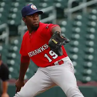 ![]() Sosa pitching for the Oklahoma City RedHawks, triple-A affiliates of the Houston Astros, in 2012 | |