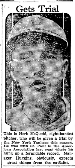 Herbert George McQuaid (March 29, 1899 – April 4, 1966) was a Major League Baseball pitcher. McQuaid played for the Cincinnati Reds in 1923 and the New York Yankees in 1926. In 29 career games, he had a 2–0 record, with a 4.33 ERA. He batted and threw right-handed.