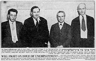 Left to right: Baruch Charney Vladeck, Heywood Broun, Jacob Panken, and Norman Thomas.