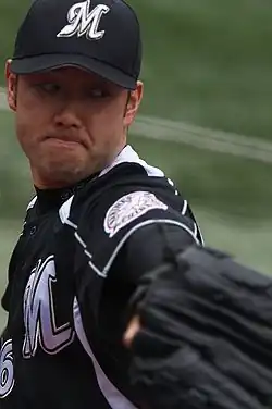![]() Kawagoe with the Chiba Lotte Marines. | |