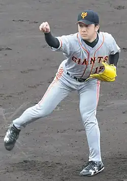 Sawamura played nine seasons for the Yomiuri Giants during 2011–2020;[4] he missed the 2017 season due to a shoulder injury.[5] In 2011, he was named the Central League Rookie of the Year.[6] In 2013, he was named MVP of the first game of the NPB All-Star Series.[7] During his first four seasons with the Giants, he was predominantly a starting pitcher; after 2014, he only appeared for the Giants as a relief pitcher.[1] As a closer during 2015 and 2016, he recorded 36 and 37 saves, respectively.[4] During his nine seasons with the Giants, he compiled a 48–50 win–loss record with 74 saves.[4]